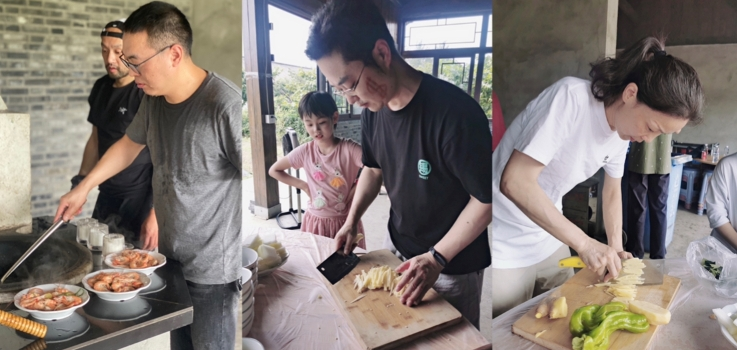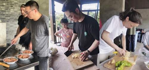 在樂舞老師的指導(dǎo)下,大家學(xué)習(xí)了非洲鼓的拍打技巧,并“戴頭飾,畫面妝,穿草裙”,設(shè)計(jì)舞蹈動(dòng)作,分組進(jìn)行鼓藝舞藝比拼。在隨后的農(nóng)家灶廚藝展示環(huán)節(jié),大家分工協(xié)作,密切配合,制作出豐盛的農(nóng)家大餐。此外,大家還一起踏青欣賞周邊美景,擁抱大自然,緩解工作的壓力,放松身心。